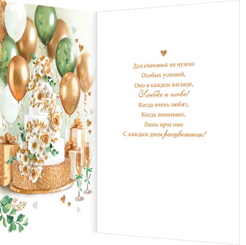Для счастья не нужно Особых условий, Оно в каждом взгляде, Улыбке и слове! Когда очень любят, Когда понимают, Лишь ярче оно С каждым днем расцветает!