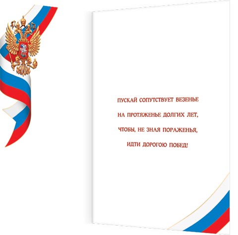 Пускай сопутствует везенье На протяженье долгих лет, Чтобы, не зная пораженья, Идти дорогою побед!