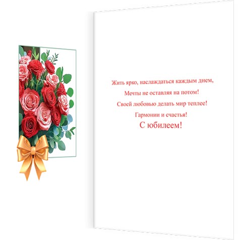 Жить ярко, наслаждаться каждым днем, Мечты не оставляя на потом! Своей любовью делать мир теплее! Гармонии и счастья! С юбилеем!