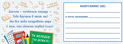 Диплом — почётную награду — Тебе вручаем в этот час! Мы все тебя поздравить рады С тем, что окончен первый класс!