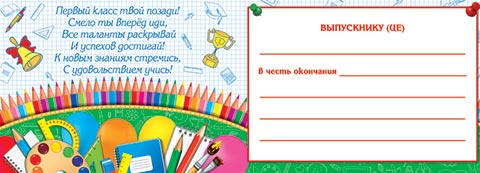 Первый класс твой позади! Смело ты вперёд иди, Все таланты раскрывай И успехов достигай! К новым знаниям стремись, С удовольствием учись!