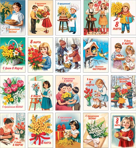 Набор мини-открыток "С праздником весны!" (20 шт.)