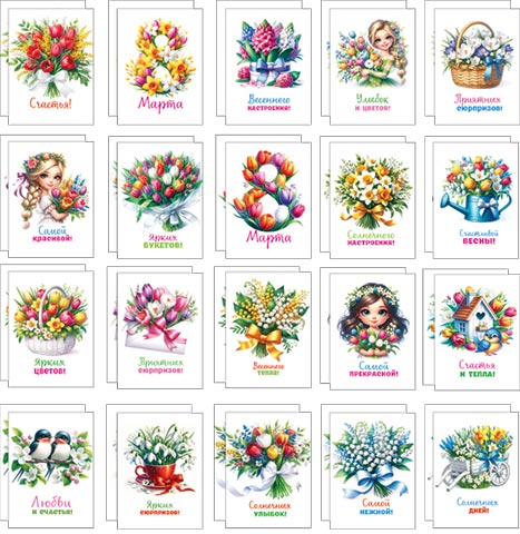 Набор мини-открыток "Весеннее настроение" (40 шт.)